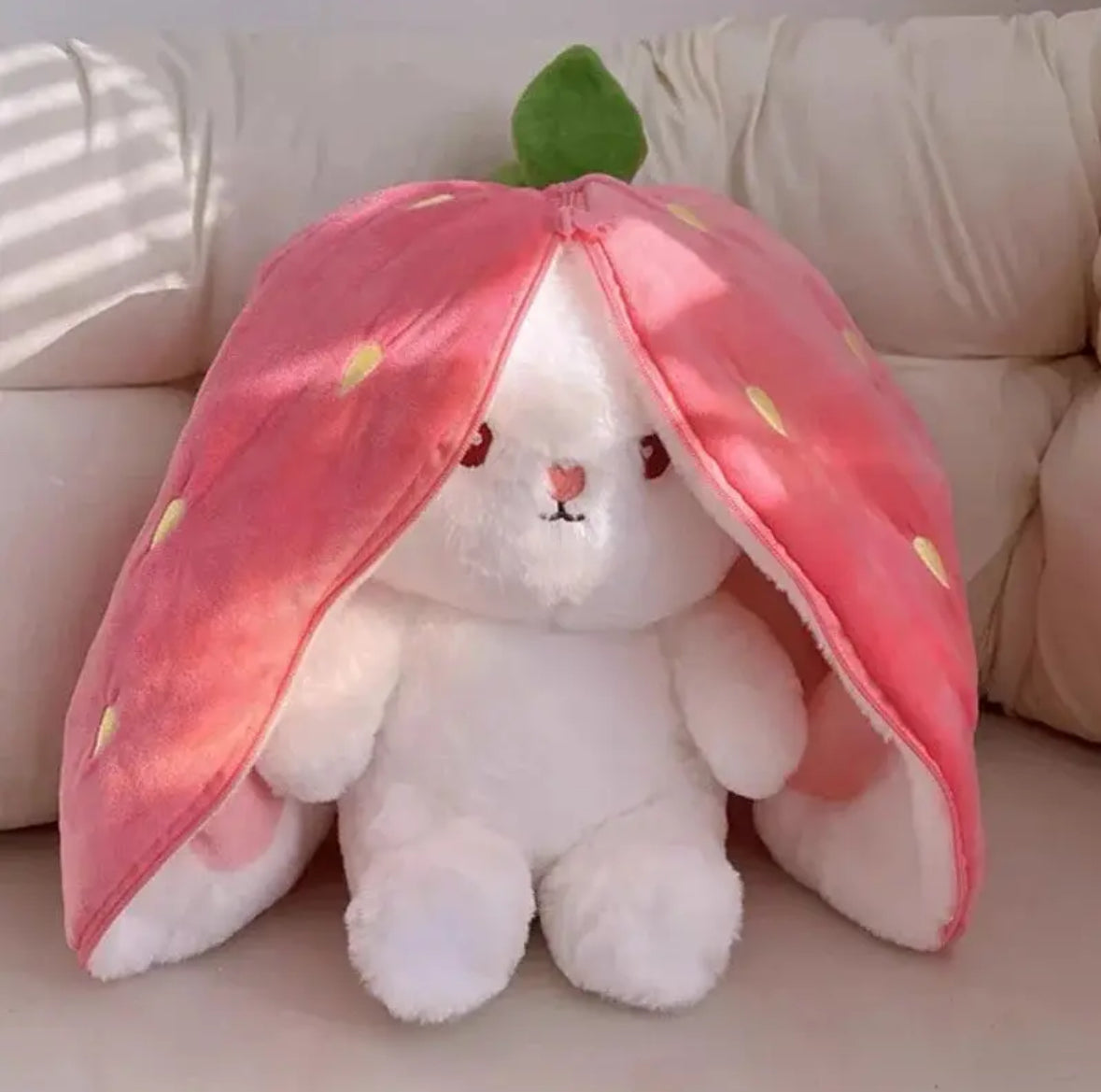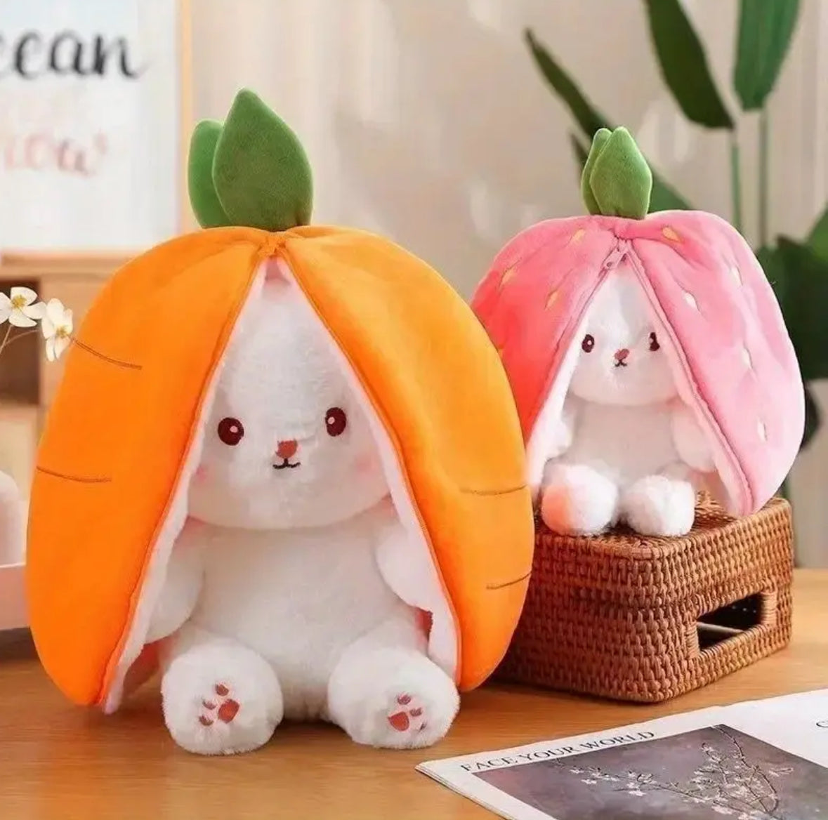 • Whether you prefer the sweet charm of the strawberry bunny plush or the playful vibe of the carrot bunny plush, this plush toy offers double the fun and double the cuteness.